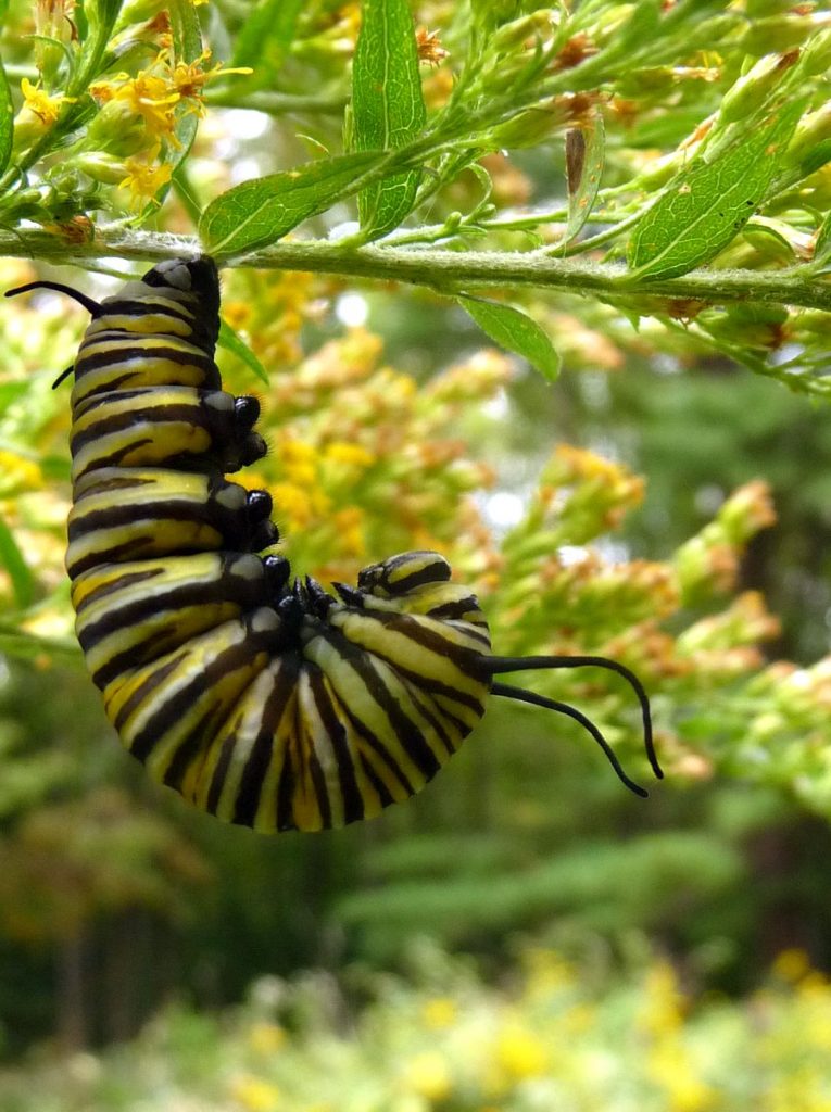 This caterpillar, as a butterfly, flies Southwest Airlines. The critter formed its chrysalis on Sept. 22 in upstate New York. –photo via Maraleen Manos-Jones