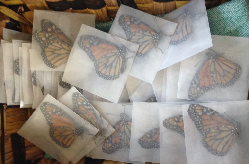 Commercial butterfly breeders ship monarch butterflies in glassine envelopes and packed with ice. –Photo by Monika Maeckle