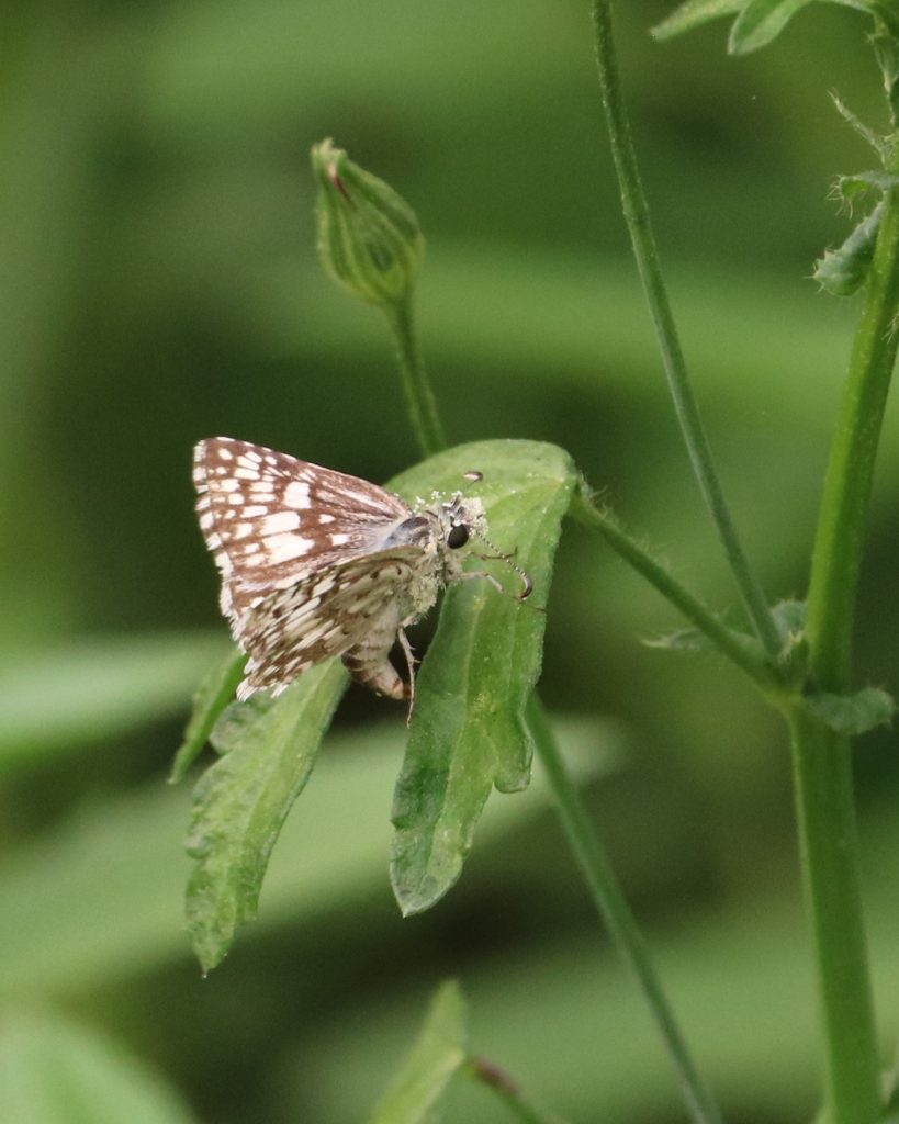A skipper lays eggs on a Winecup leaf in the Newmans’ transformed wildflower prairie. –Photo by Lee Marlowe