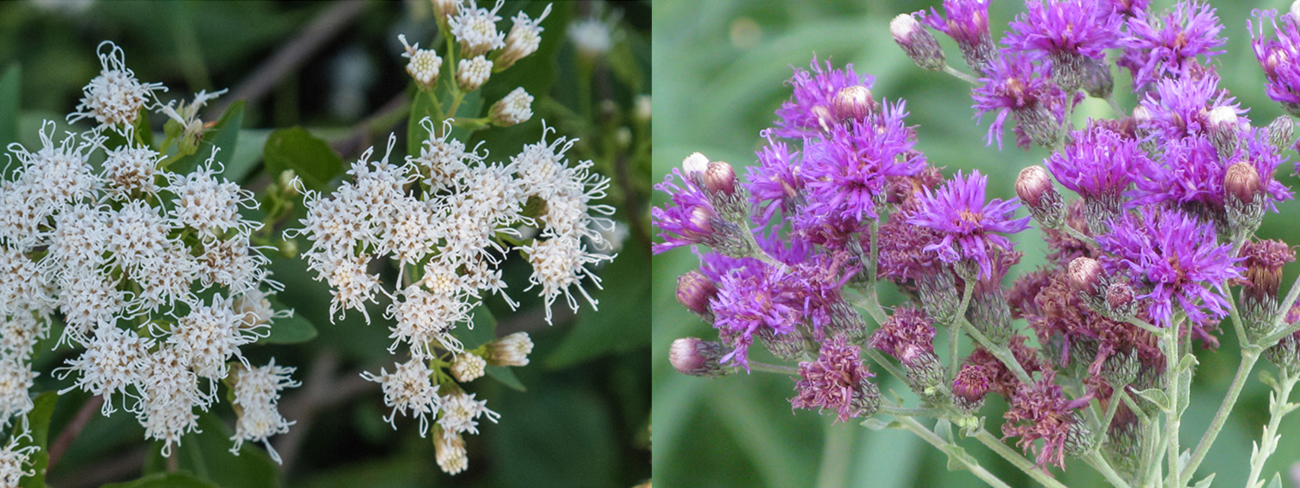 TOP PHOTOS: Shrubby boneset, courtesy Ladybird Johnson Wildflower Center, Western ironweed by Joan Miller